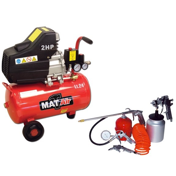 1.5KW / 2HP 24 LITER | 220V | SINGLE STAGE | DIRECT DRIVE | INCLUDES 5 PIECE SPRAY GUN KIT