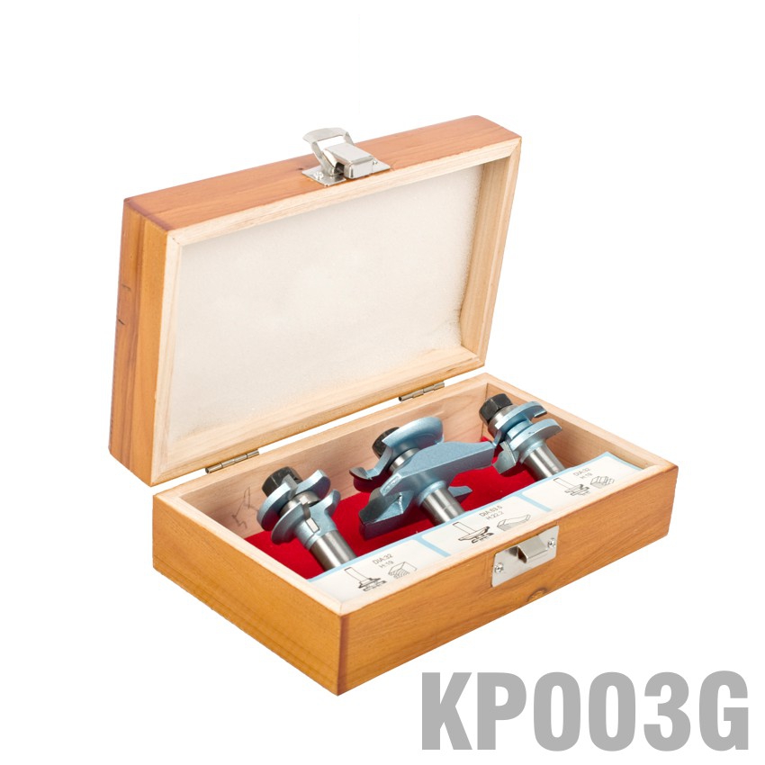 The set is designed to be used in a router table to create a cabinet door.