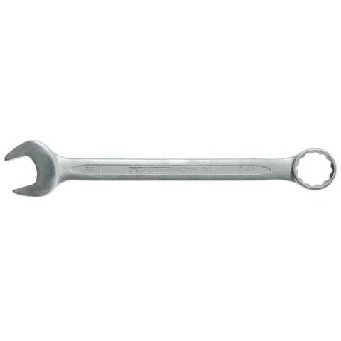 Combination Spanner, Metric, DIN 3113A, Offset 15 degrees, Chrome vanadium. Satin Finish. Same dimension at both ends. The 12 point ring end is set at a 15degree angle.