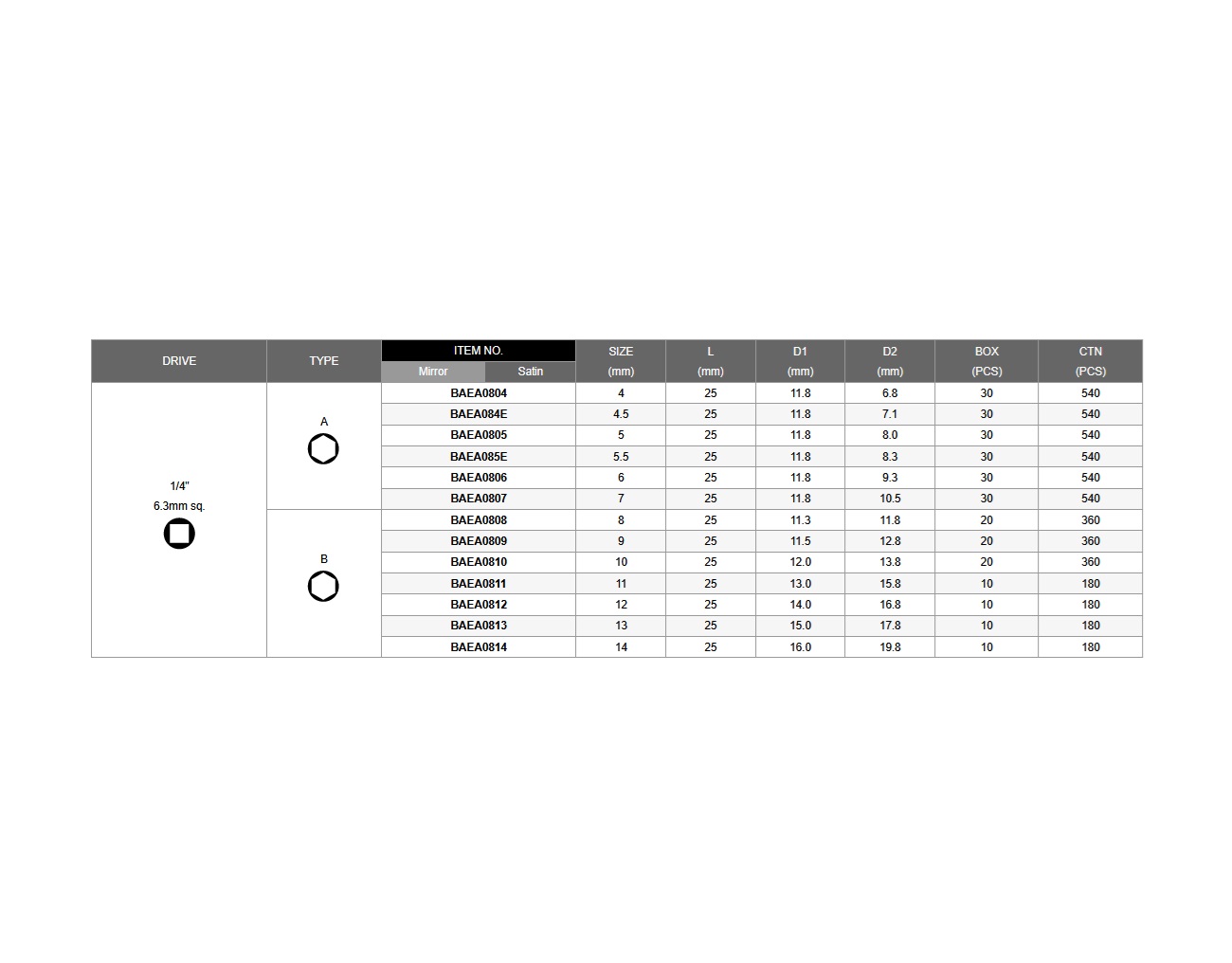 ITEM NO: BAEA series